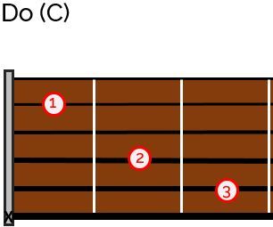 Note by the way the number 4 in black on the left that indicates on which fret we start playing the chord.